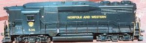 Next, here is a comparison between the 536 in it's near-finished state, and the last N&W GP30