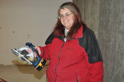 Annette spotted this cool thing at Home Depot. I originally went there looking for a smaller compressor to replace the 12-gallon noisemaker I have upstairs in the train shop. I didn't find anything I liked, but she found this thing and actually I got an entire set. It's a cordless, very lightweight circular saw. It's just barely large enough to cut a 2x4, but that's all it needs to do. I bought a DeWalt circular saw several years ago, when my plans for the basement became somewhat derailed... buying a vintage car kind of contributed to that. I never took it out of the box until tonight. It's quite a beast, and I'm sure I'll get some use out of it but this little cordless one is way too cool and will get most of the work I think.