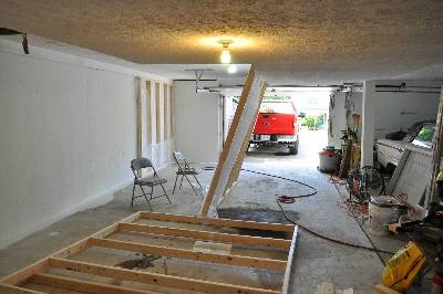 This is it... one 8 foot section of framing. This is next to the garage stall and will be a narrow strip (inside framing will be 46" to house the staging tracks. At this point I'm thinking a two-level staging, 12-14 tracks on each level, and a heelix at the opposite end. The heelix will be part of staging, not part of the operational layout and will serve to access both levels of staging as well as a way to turn trains coming in or out - inbound trains can go into the heelix and then back into staging. That's what I came up with today anyway. I'm also thinking of putting a camera in staging, so that I can verify what is going on without having to physically go back there. Yeah, I just thought all this up today after putting up this little frame.