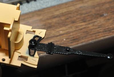So what you're looking at is a sequence of photos depicting what I did to my diner joints to make them pretty well foolproof. I cut the little pin off and drilled holes in the same spot, at both ends of the long rod that acts as the drawbar between the cars. I then screwed it in place using Walthers delrin screws and compression nuts.