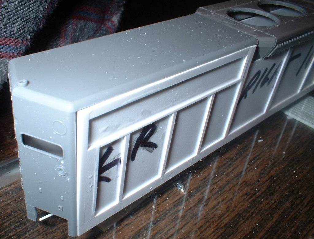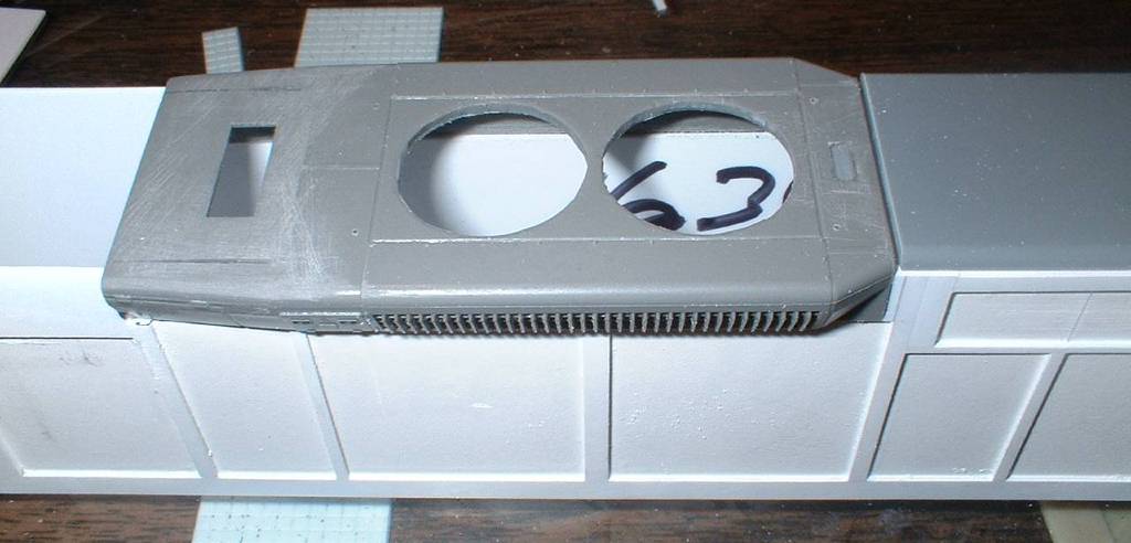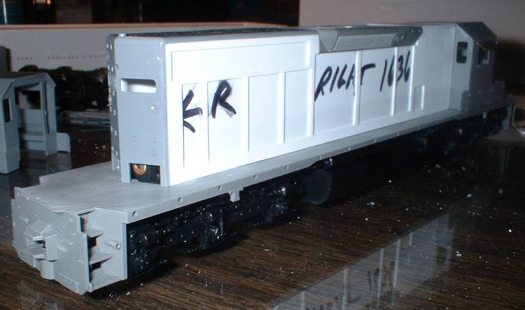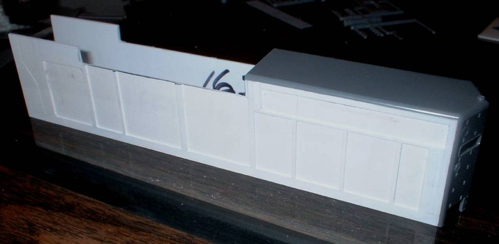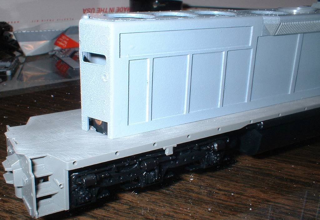 The cab/nose assembly posed for this photo is not the one which will be used on the finished model,