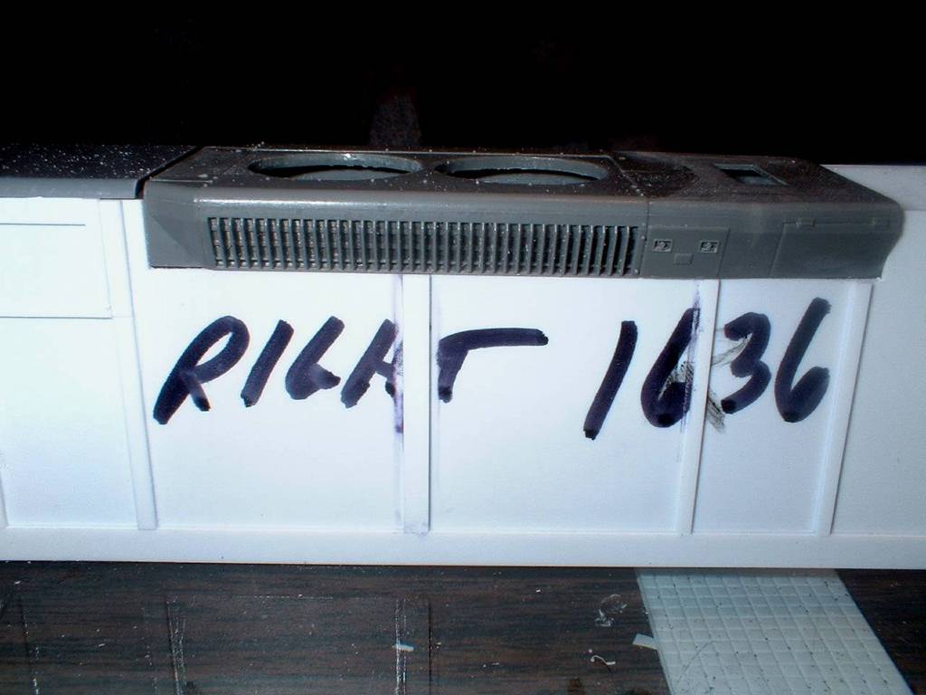opening all the way through, which would weaken the long hood structure, I sanded down the Cannon grills
