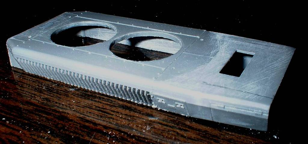 The dynamic section hatch is ready, with a little more fine sanding, to accept Cannon's fan bases and 40-line exhaust