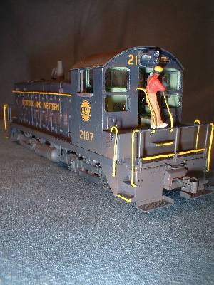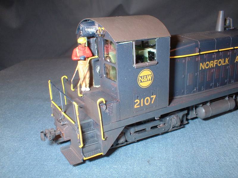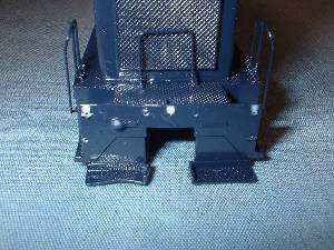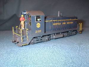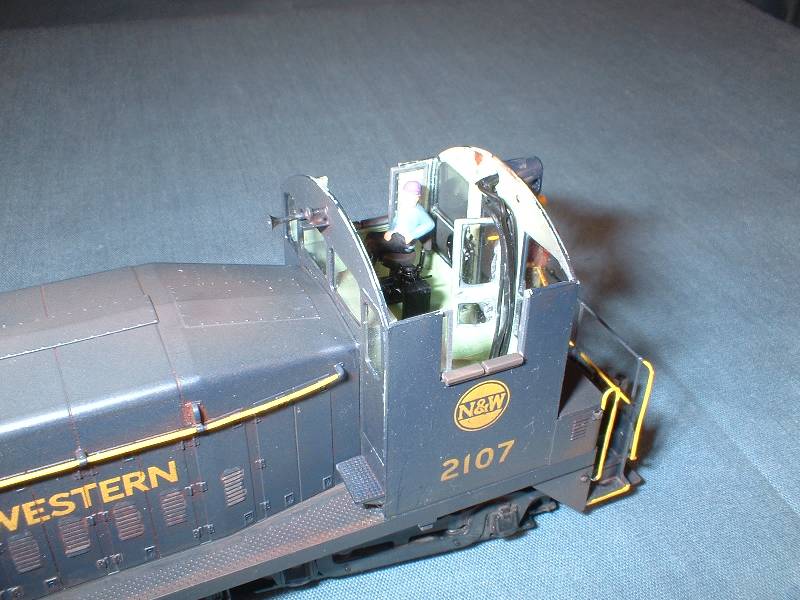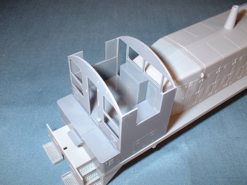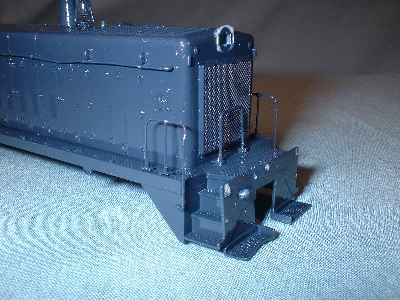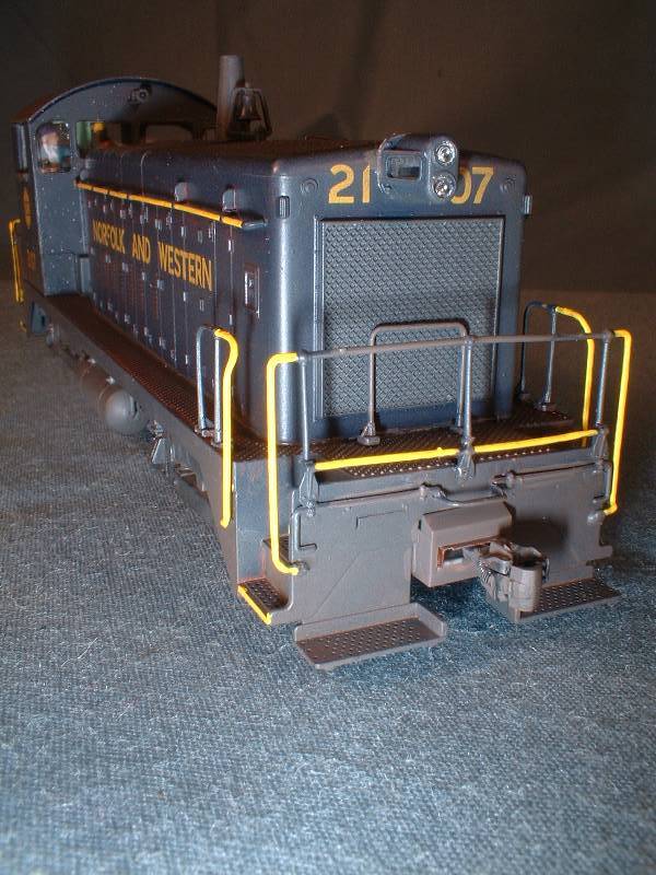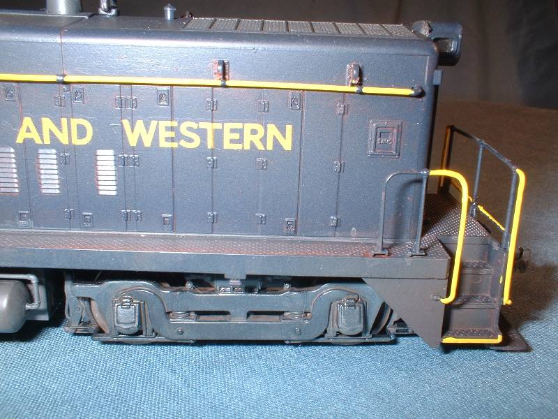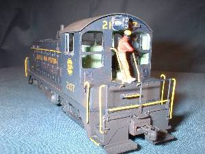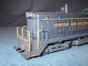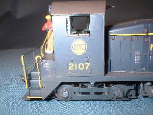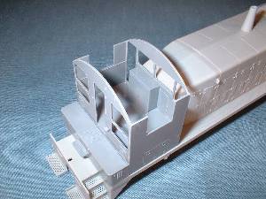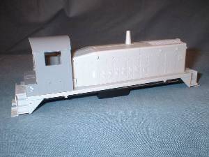 | The rear truck in this switcher is not powered. I had to remove the worm housing to allow for a full cab