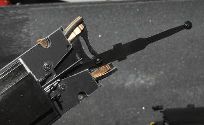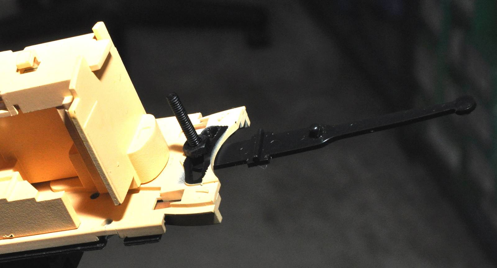The answer is to just cut away all of this material in between. The contacts are left intact and the basic shape of the part isn't disturbed - it's delrin and rather thick anyway. You need to be sure not to take off the snap lugs that fasten this part to the diaphragm center piece, and of course the snap pin that holds the truck to the contact piece.