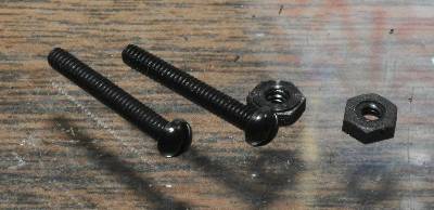 These are the Walthers plastic screws and nuts. I don't think they are made anymore but any screw and nut will do as long as you use something to secure the nut and cut the screw off to the right length.
