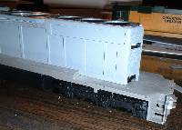 The dynamic brake section is a modified part from a Kato SD40-2. The molded on fans and exhaust stack