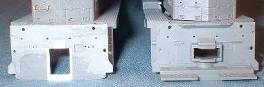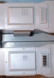 Comparison of stock Kato dustbin hatch and exhaust stack to Cannon parts.