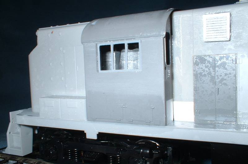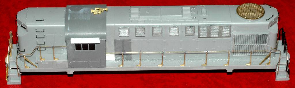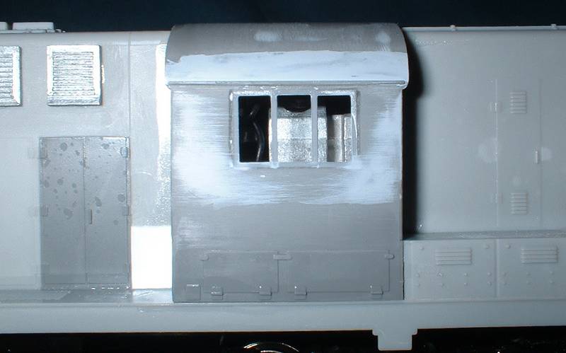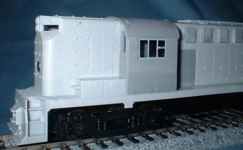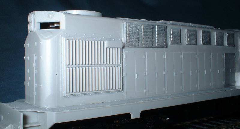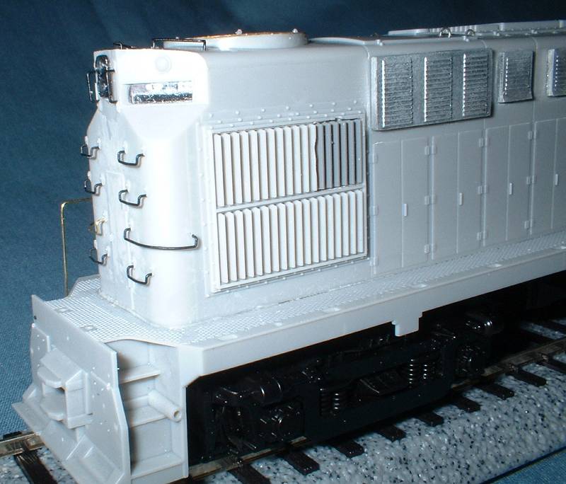but a bit on the heavy side. The SV kit parts need a bit of work here. | This photo also shows the modification to the radiator, removing the chunky control box and replacing with louvers from an older Atlas RS11 shell - hence the different color plastic.