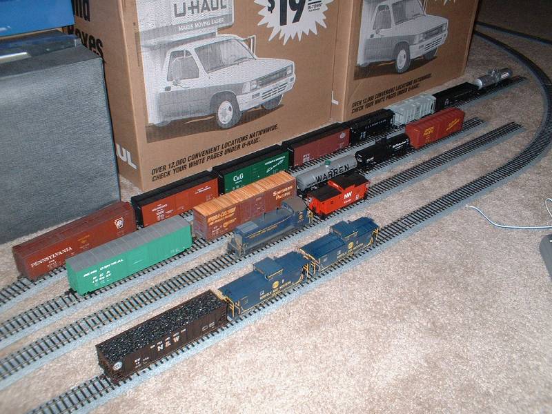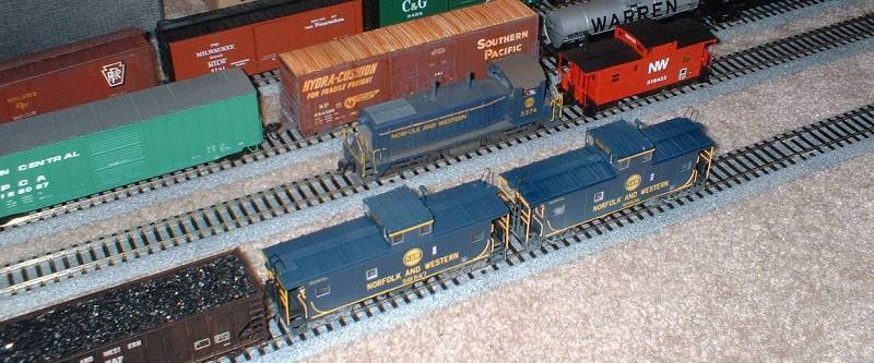 An overview of Osborn-On-McSwain. The CG class caboose is an Overland.